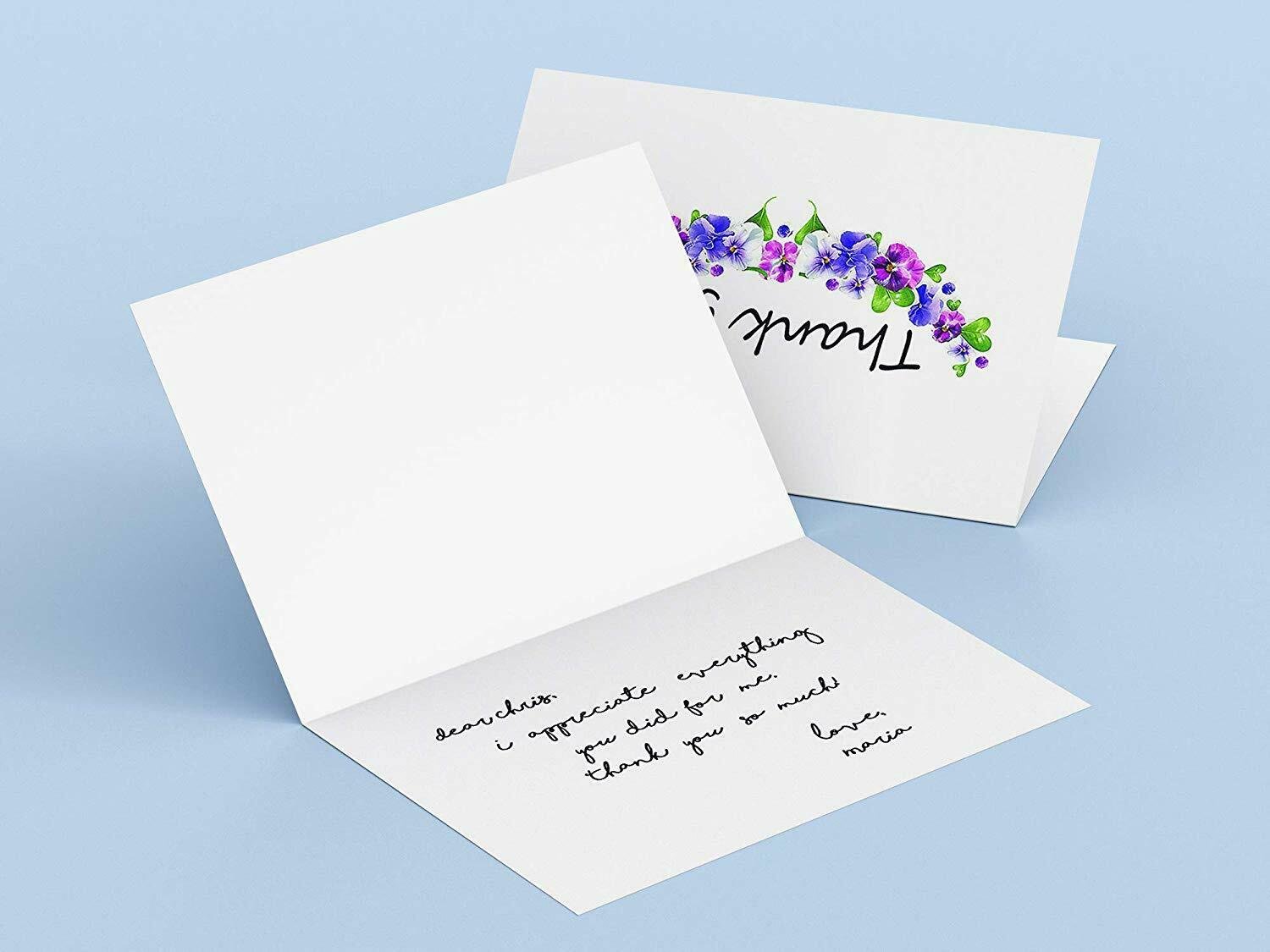 Set yourself apart - as fewer people write thank you notes, you can set yourself apart by writing one to your family, friends, customers, business clients, and employees with our high-quality, floral designed thank you notecards. Made from the heavyweight white paper of 270 gsm ivory board covered with matte membrane and comes in 17 designs to choose from, let them know how much you appreciate them.